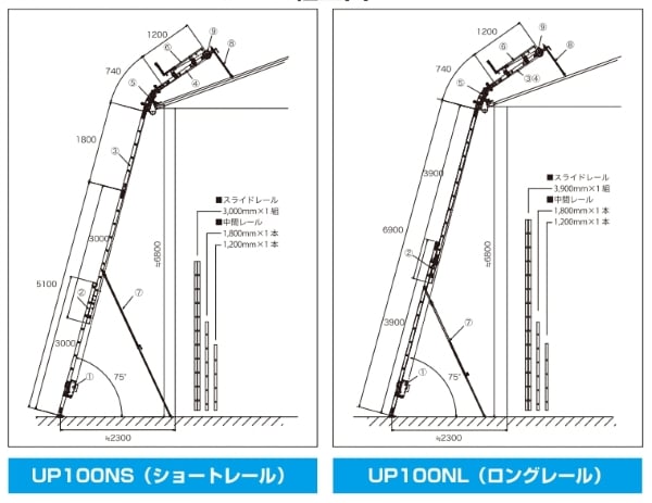 UP100NL ロングタイプ 3.9m~6.9m(2階軒先まで届きます)