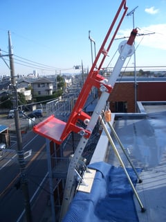 狭小地、軒先作業で安全に荷揚げ作業ができます。