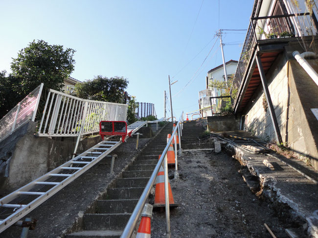 高台の車両が入れない住宅工事 建築資材荷揚げ(神奈川県横須賀市)