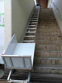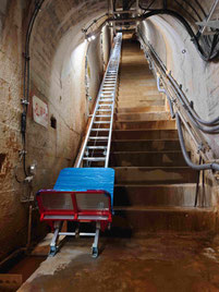 ダム地下階段 機材運搬用に設置 階段がカーブしている為に3分割してリフト長さ25mで3基設置しています。