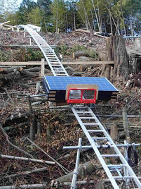 ■車両が通行できない現場でソーラーパネルの荷揚げに使用
