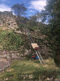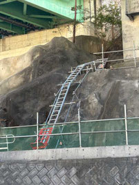 ■歴史的重要文化財の為、単管パイプで櫓を組みレールを固定